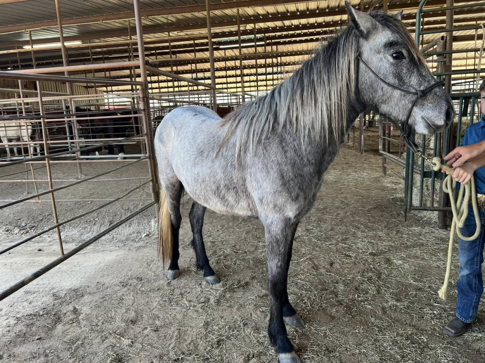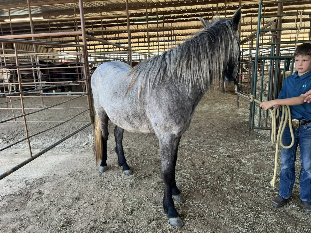 PONY 2 YR BLUE ROAN FILLY (#216 A) HORSE SALE FEB 28,2026 @ 6 PM WITH SADDELES N HORSES START AROUND 7:30PM