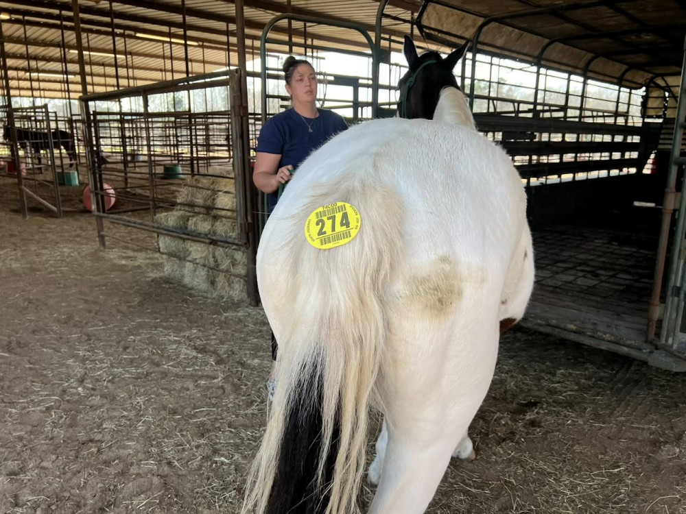 PT 7 YR BLACK/WH MARE (#208) HORSE SALE FEB 28,2026 @ 6 PM WITH SADDELES N HORSES START AROUND 7:30PM
