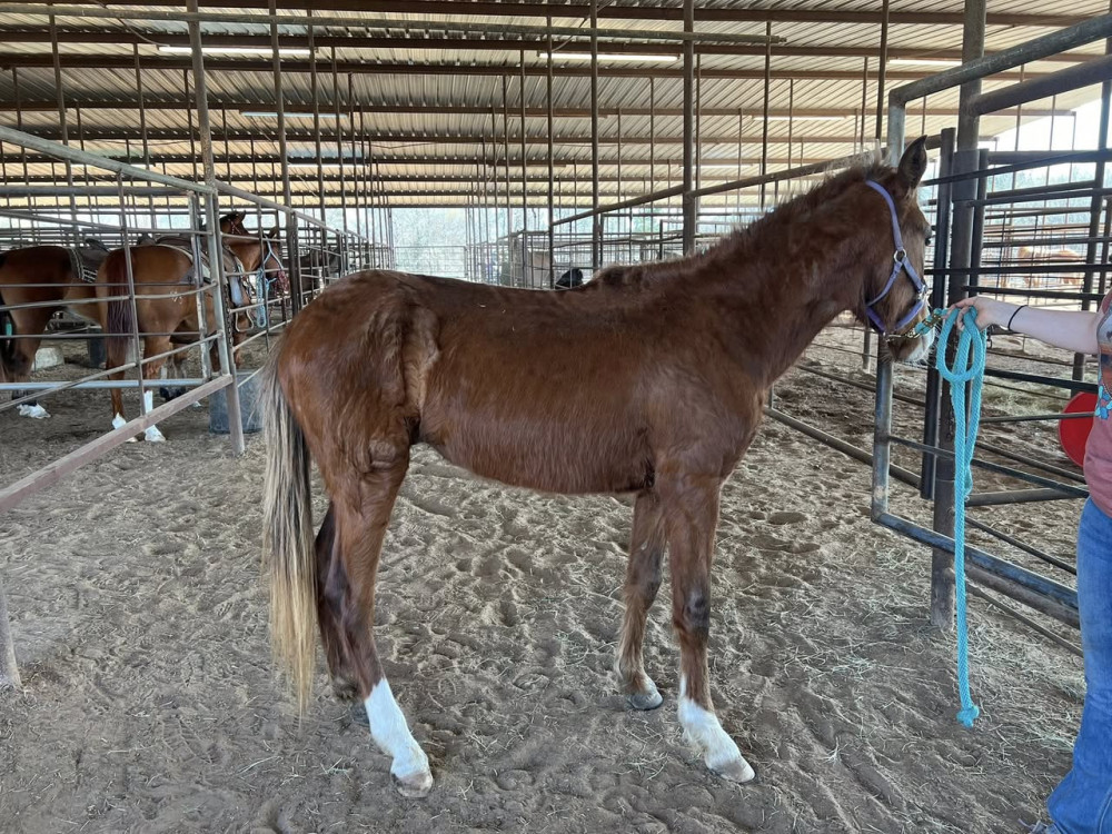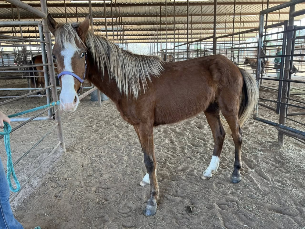 PONY X 3 YR SORREL GELDING (#279) HORSE SALE FEB 28,2026 @ 6 PM WITH SADDELES N HORSES START AROUND 7:30PM