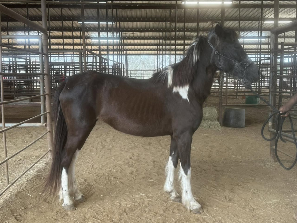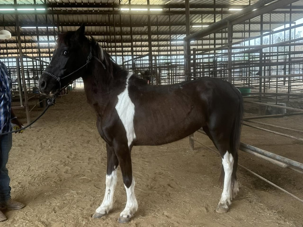 PONY 10 YR BLK/WH PT MARE. "MOLLY" (#344) USED TACK STARTS @1 PM. & HORSE SALE