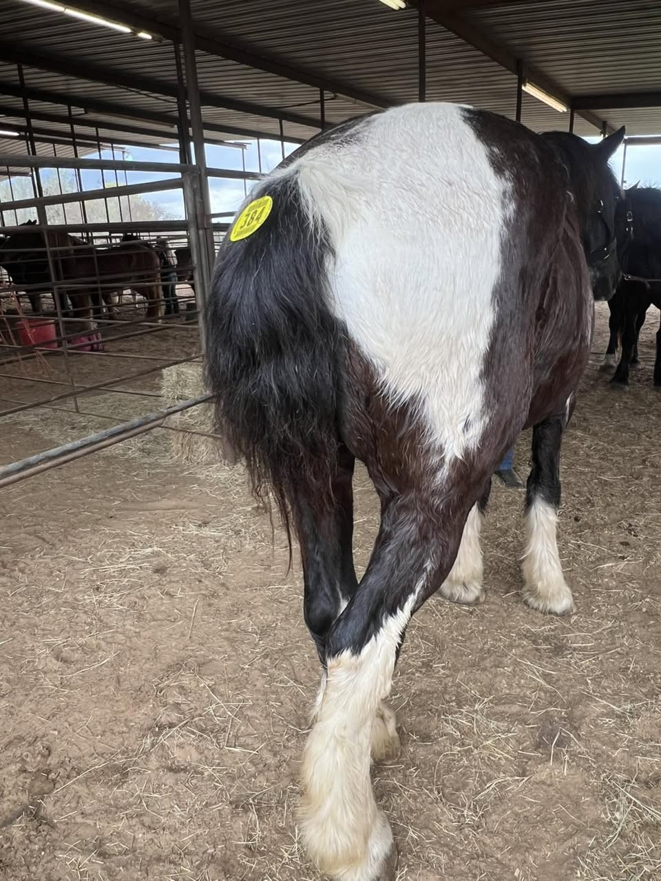 DRAFT 18 BLK/WH GELDING (#384) USED TACK STARTS @1 PM. & HORSE SALE