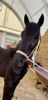 Meet Gypsy Raven — a 2025 black Morgan colt with bloodlines that mean business. On his sire's side, he traces back to TB Midnite Summers Dream, a proven World Champion producer whose offspring have taken home titles at the highest levels of Morgan competition. This little guy is halter broke, gentle as the day is long, and already thinks he's your shadow from the moment you walk through the gate. He's got the breeding to go places and the personality to steal your heart before he ever gets there.