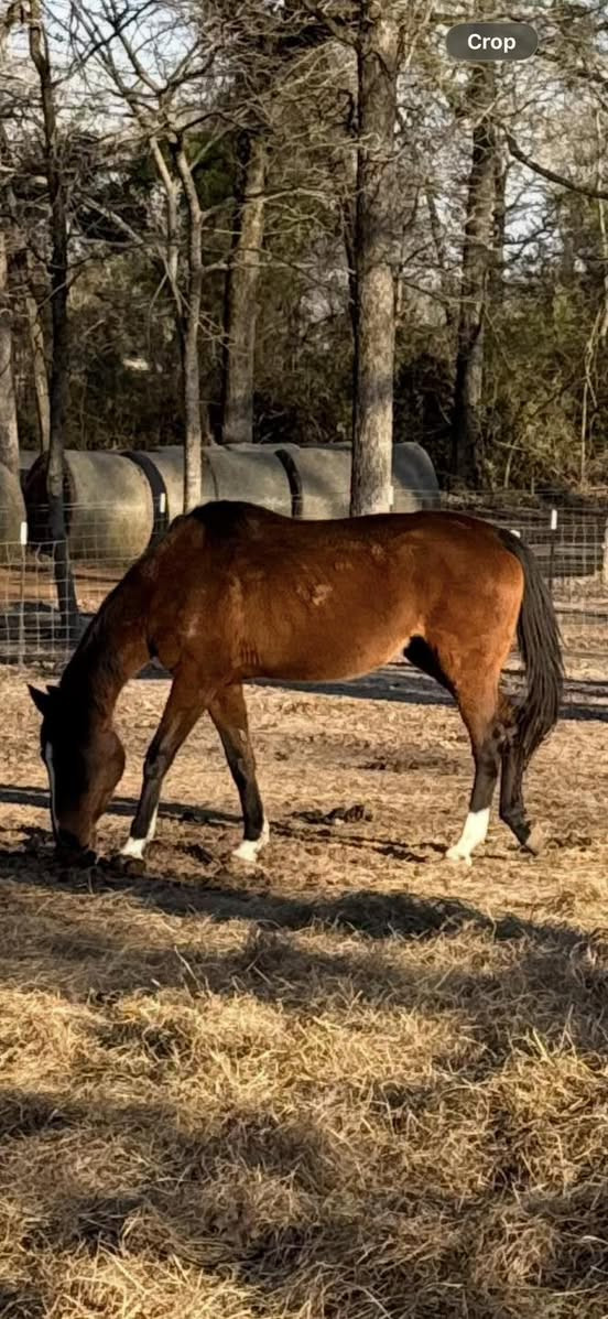 Daisy is a standout with looks, temperament, and talent everyone wants in a horse. She's truly the whole package - smart, willing, and capable of doing it all. She is tattooed was raced and has been used as a lesson horse. With her foundation, attitude, and natural ability, she'll make someone an incredible partner for any and all riders. Has been used on the ranch and will do anything asked of her.