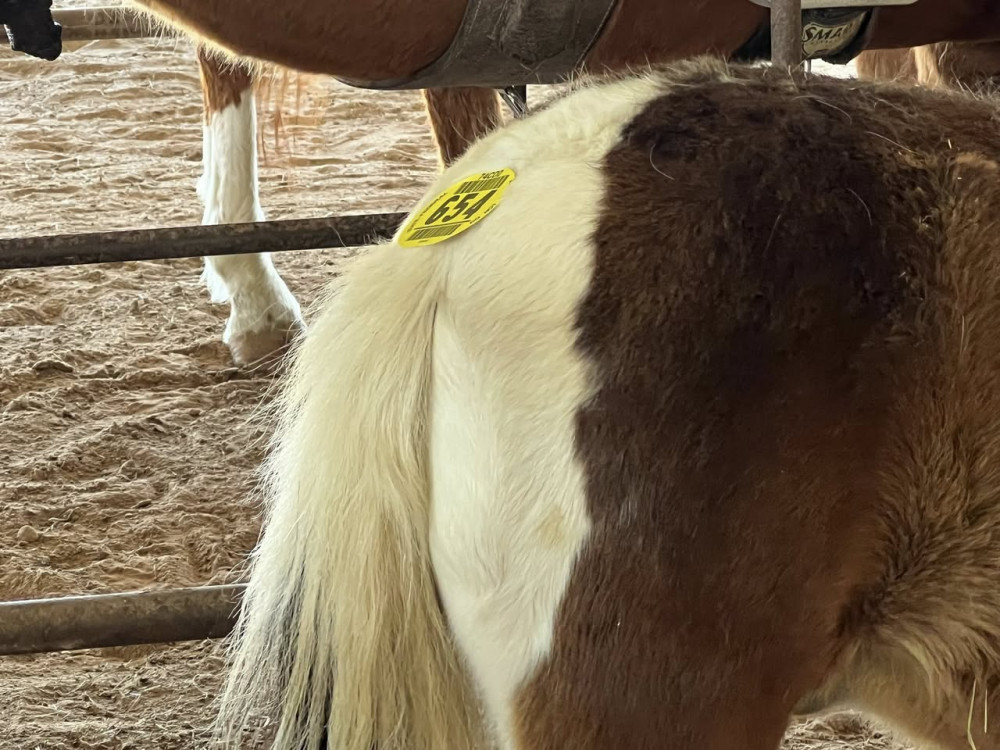 PONY 14 YR BR/WH GELDING (#654) MARCH 21 2026 HORSE SALE SADDLES START @ 6 PM