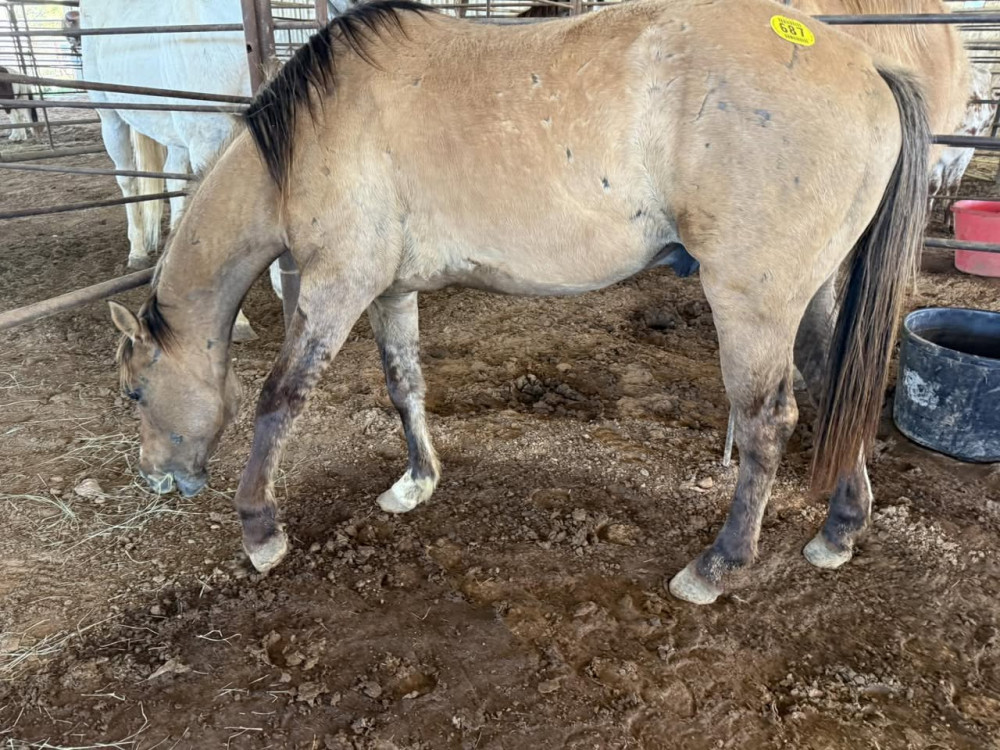 QH 2 YR DUN GELDING (#687) MARCH 21 2026 HORSE SALE SADDLES START @ 6 PM