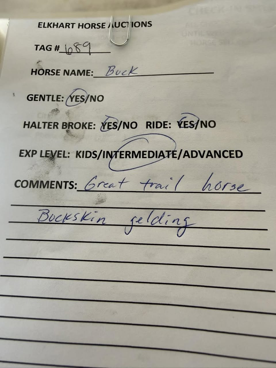 GRADE 18 YR BUCKSKIN GELDING (#689) MARCH 21 2026 HORSE SALE SADDLES START @ 6 PM