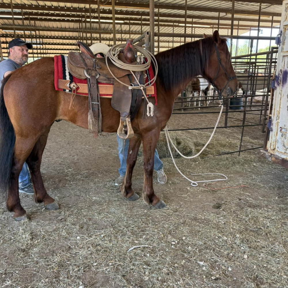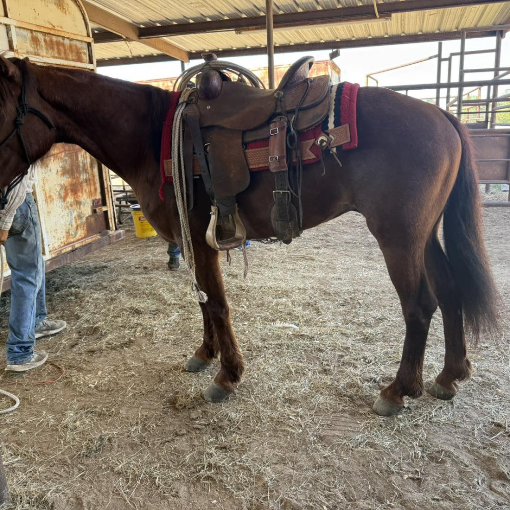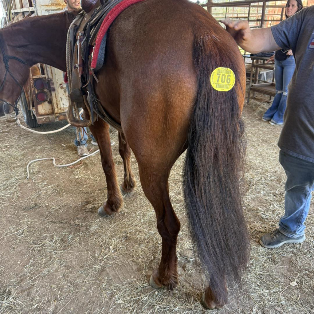 QH 5 YR OLD RED ROAN GELDING (#706) MARCH 21 2026 HORSE SALE SADDLES START @ 6 PM