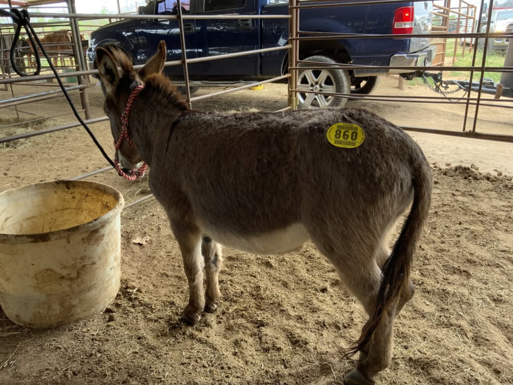 DONKEY 4 YR GREY JACK (#860) MARCH 28,2026 HORSE SALE SADDLES START @ 6 PM