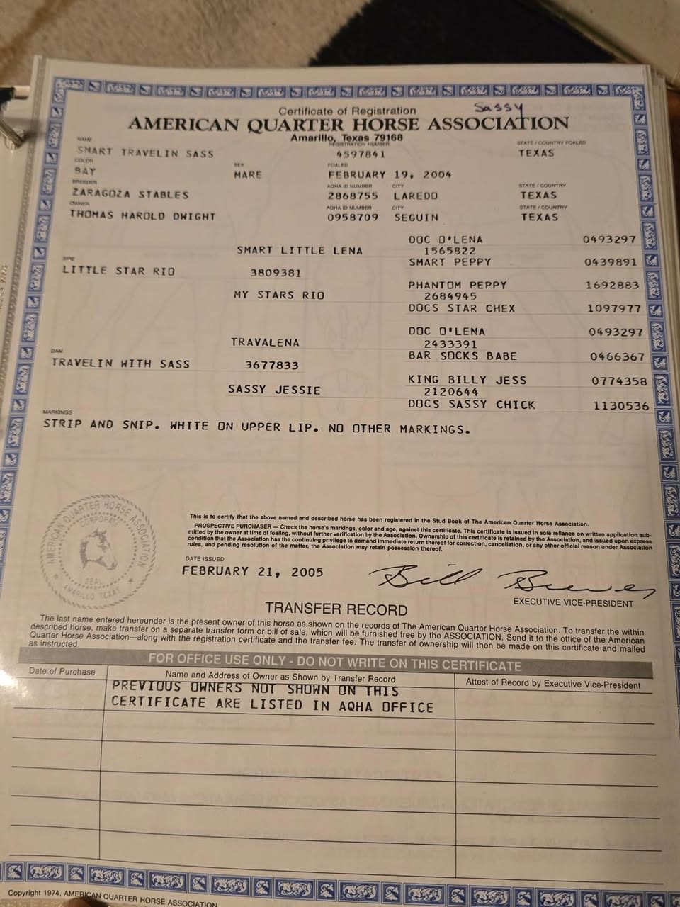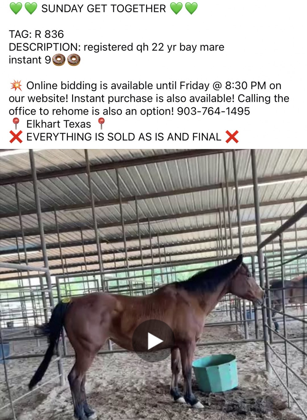 REG. QH 22 YR BAY MARE - SASSY (#836 R) Sunday Sale 3/28 to 4/3