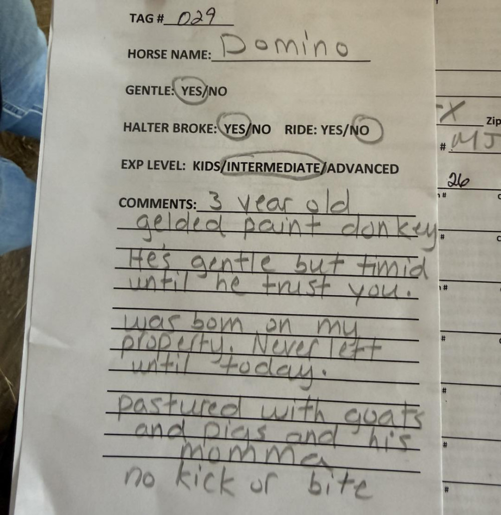 PT DONKEY 3 YR BAY/WH JOHN "DOMINO" (#29) USED TACK & HORSES SALE APIRL 4,2026 TACK STARTS AT 1PM