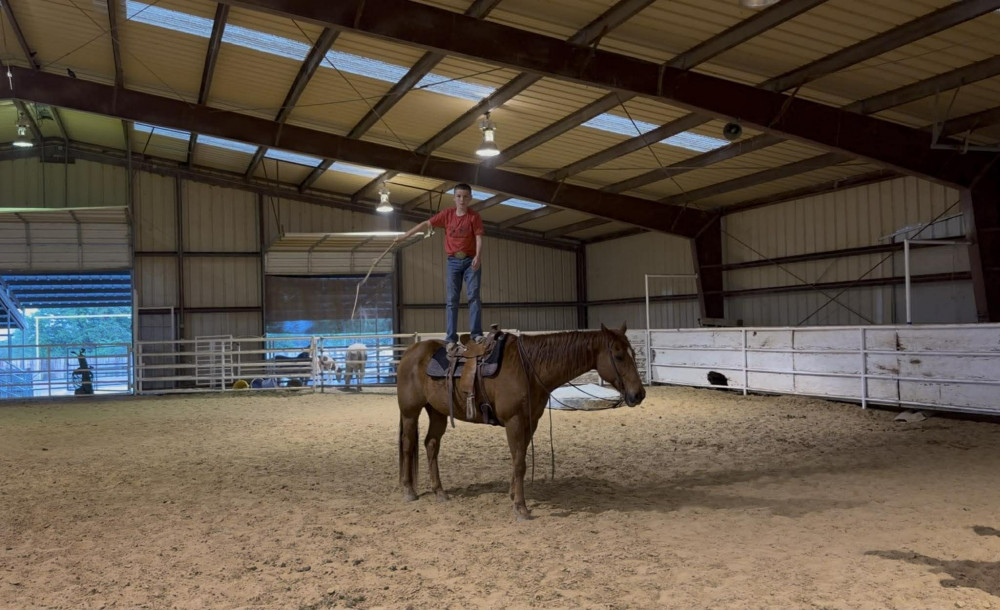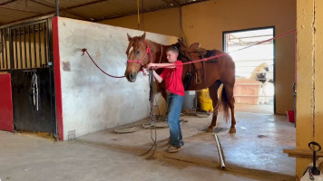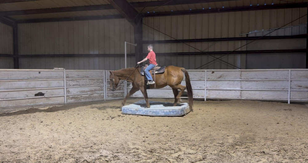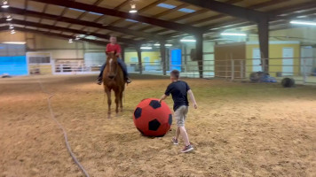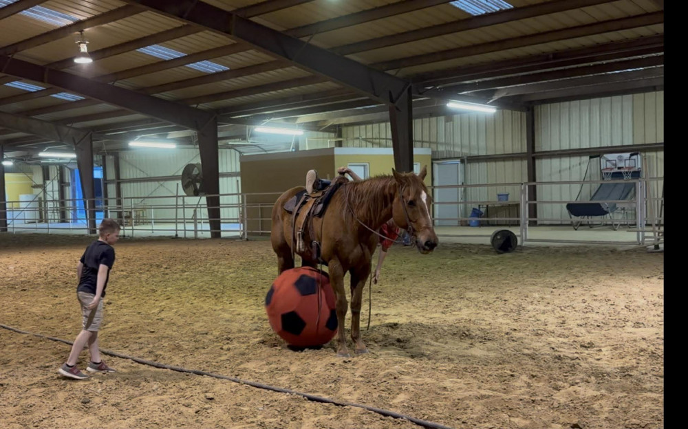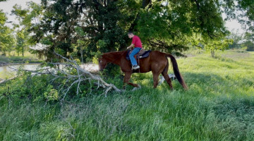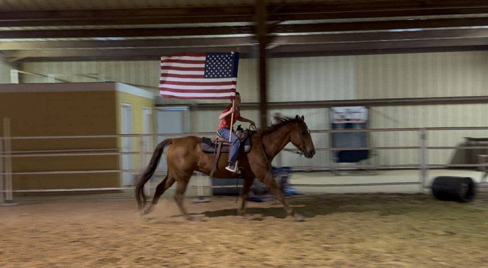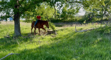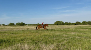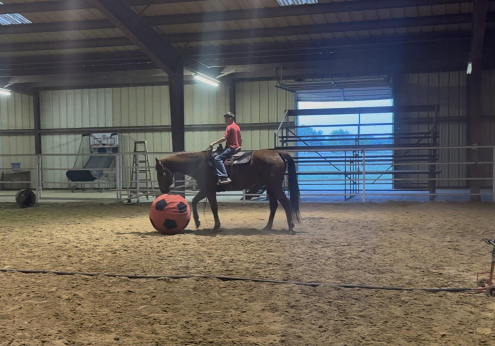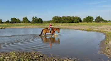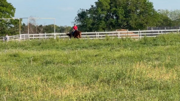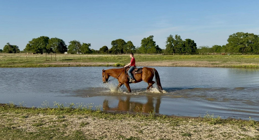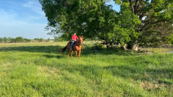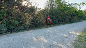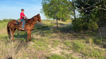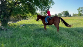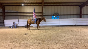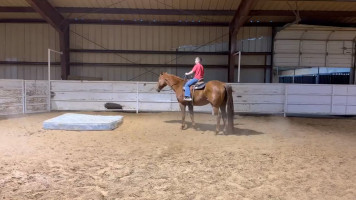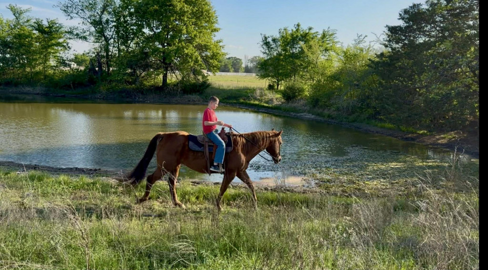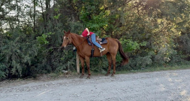 TK is a 17yr old sorrel gelding that stands about 15.2 hands tall. This boy is one of the hard to find ones everyone is looking for! He is easy to catch, leads, loads, stands tied, stands in cross ties, is good for a bath, picks up his feet, stands to be saddled and mounted. He is one hand broke with a good stop and back up. He will walk, trot and lope off when ask and has some more speed when asked. He will go thru the pond, cross logs, check the mail, walk on a mattress, doesn't mind the boys giant ball, you can stand up and pop bull whips. We have literally found NOTHING that phases this guy. He was previously used as a lesson horse, he will trot and lope the barrel pattern and he's been used to push cattle. He rides good on the inside or the outside.