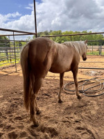 GOLDIE IS A BEAUTIFUL 2 YR OLD PALOMINO FILLY WITH A FRIENDLY AND GENTLE PERSONALITY. SHE IS ALWAYS THE FIRST ONE TO GREET YOU RIGHT AT THE GATE. GOLDIE COMES FROM REGISTERED PARENTS AND COPIES OF THEIR PAPERWORK ARE ATTACHED