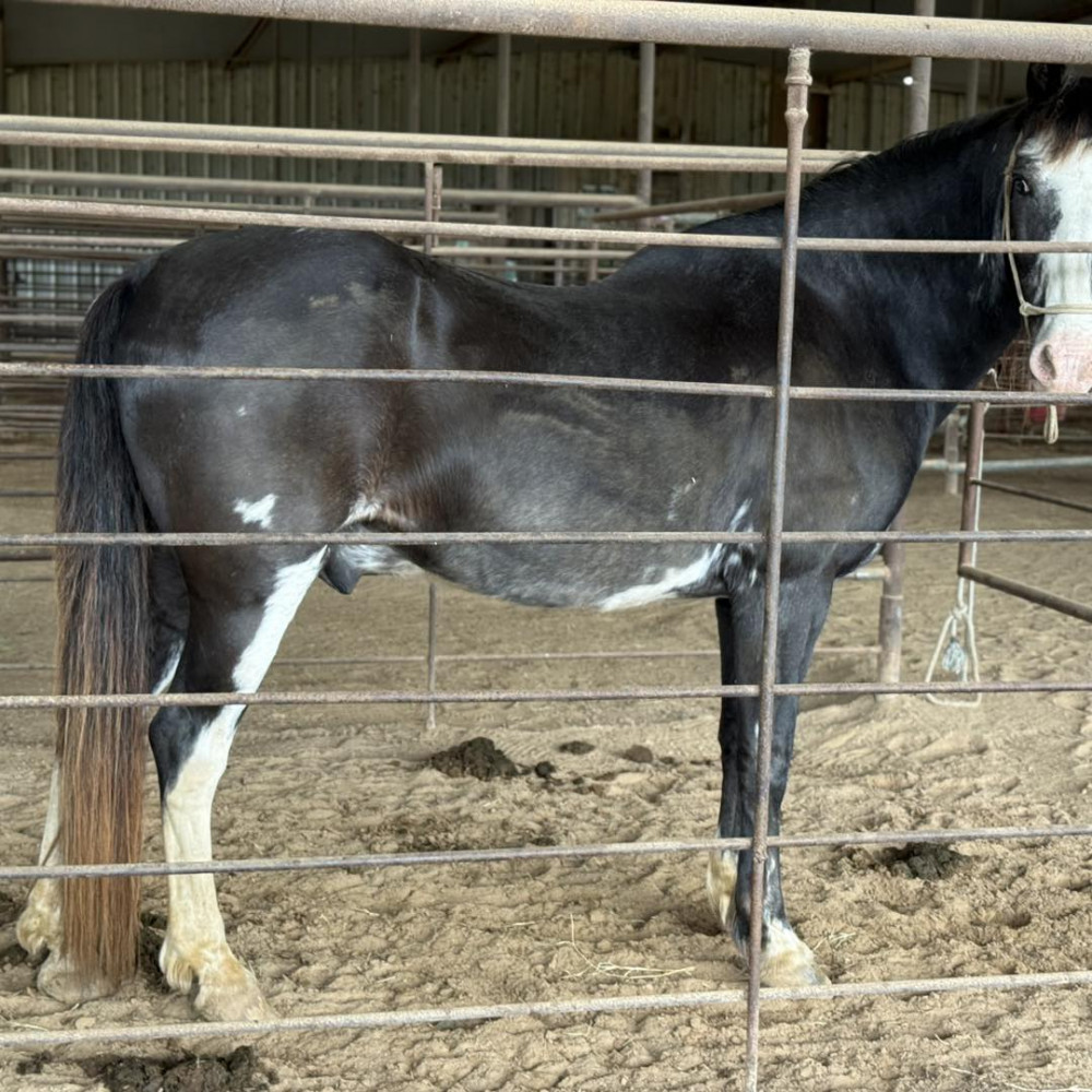 1/2CLYDESDALE 1/2QH 18 YR BLK/WH GELDING (#143) Horse Sale Saturday 4/11/26