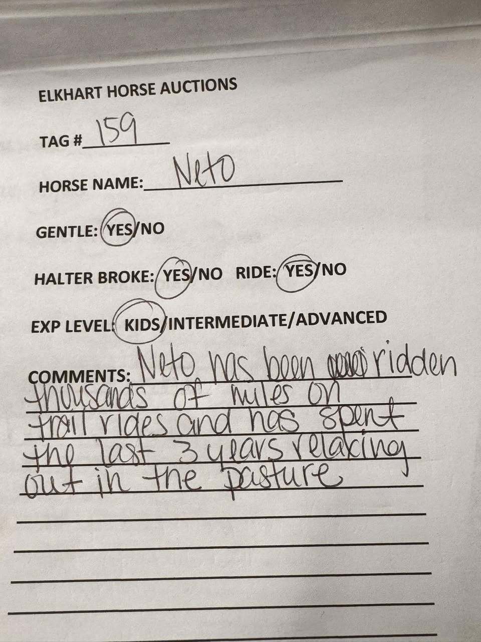 NETO HAS BEEN RIDDEN THOUSANDS OF MILES ON TRAIL RIDES AND HAS SPENT THE LAST 3 YEARS RELAXING OUT IN THE PASTURE