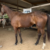 7 year old 17 hand secretariat bred OTTB last raced early 2025. Got him 6 months ago skin and bones, still needs some weight. Started riding him again recently, does well under saddle no buck . Only selling because hes taller than what we need him for
