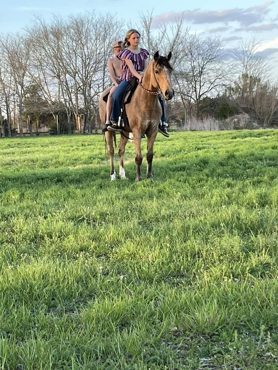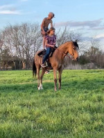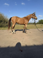 Cookie is a 10 year-old 13.3 hand quarter pony he has been used outside for the kids to help gather cows and sort along with being hauled to play days and jackpots cookie is the perfect step up Horse for any little kid he is soft in the bridal but ready to go when a little kid ask requires no maintenance is 100% sound ride him today. Leave him alone for months get back on him and he's the same horse