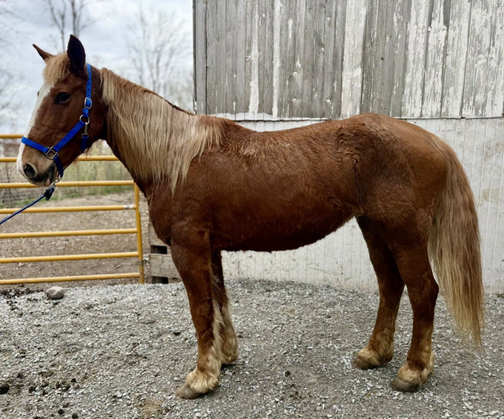 BELGIAN X 16 YR SORREL MARE. "DUTCHESS" (#317) APRIL 18 HORSE SALE SADDLESSTART @6 PM