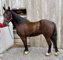 Cowboy – 3-Year-Old Bay Gelding stands around 14.2hh and is a good crossbred gelding broke to ride. The boys have been riding him and he rides around nice and gentle. He’s a handy little horse that would make a great one to check cows or bring them home on. Good-minded, useful, and ready to go to work.