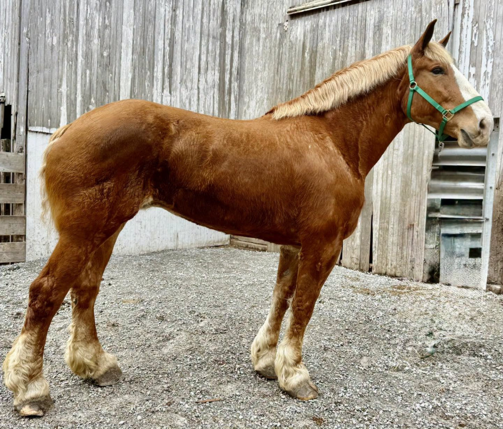 13-Year-Old Registered Belgian Mare is broke to drive and has been shown, including being shown as a wheel horse in a 6-horse hitch a few years back. She is a nice built mare with experience and presence, making her a great addition for work or show.