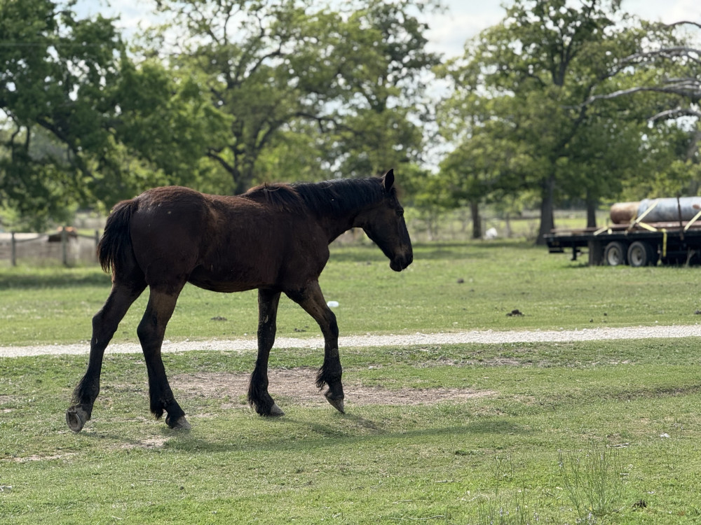 PERCHERON 1 YR BLACK GELDING. "POODLE" (#338) APRIL 18 HORSE SALE SADDLESSTART @6 PM