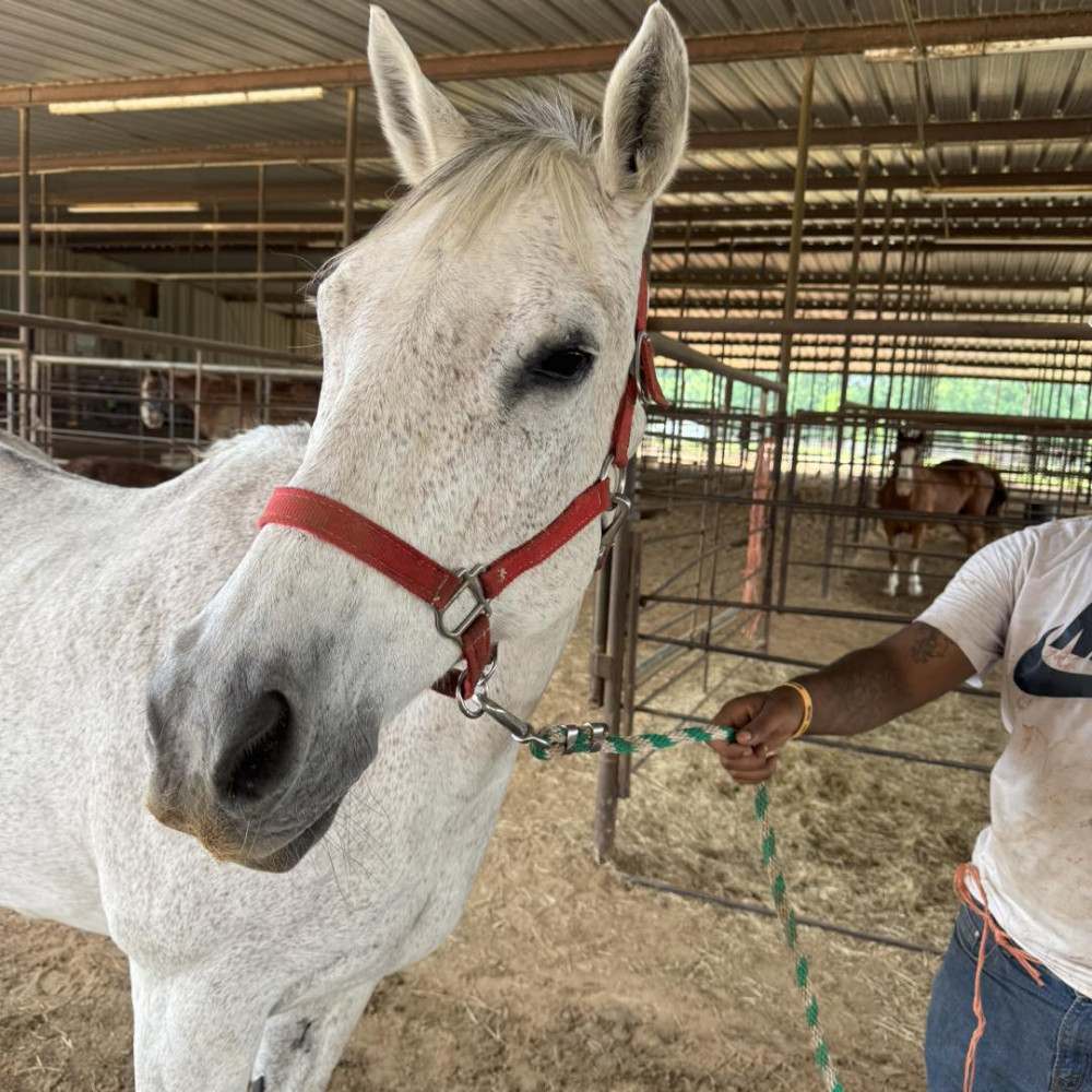Star is the 16-year-old Gray Mare. She has a knot on her neck on the left side from an old injury, but it does not give her any problems. She has a kid friendly. She stands for the Ferrier stands for bathing. She’s been wrote on the trail ride selling because of going out out of the Horse business she’s also very easy to catch an easy to load.