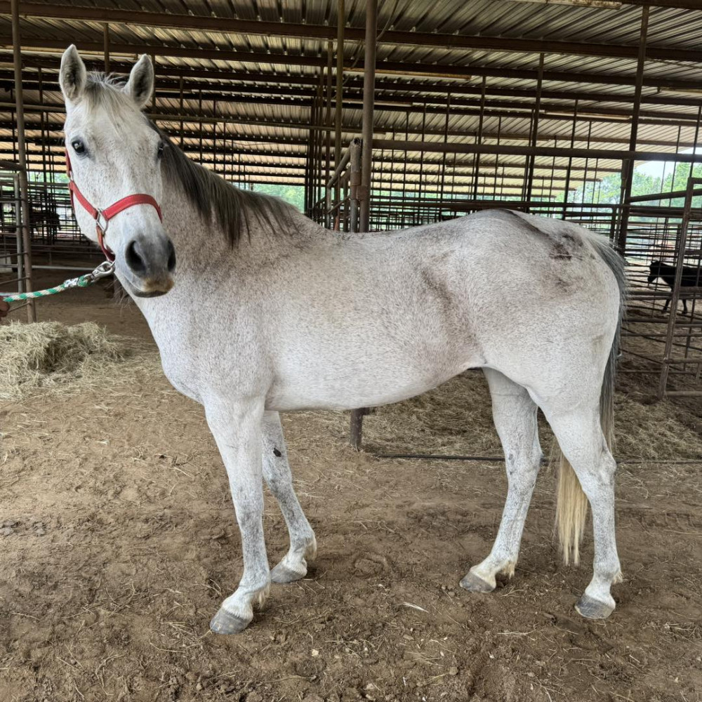 QH 16 YR FLEA BIT GREY MARE (#412) APRIL 25 HORSE SALE SADDLES START @ 6PM