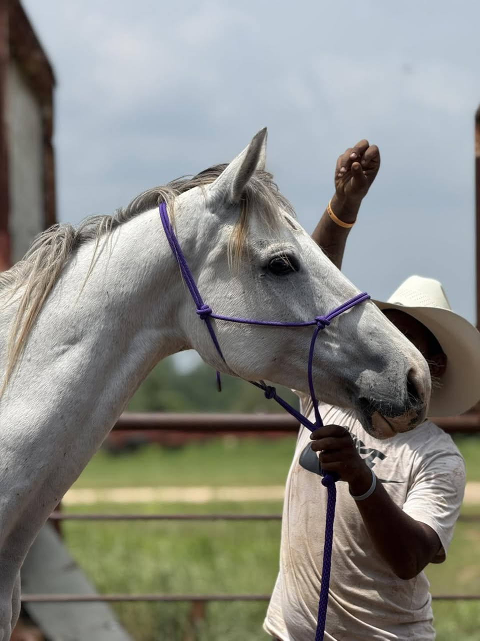 Daisy is going to be a four-year-old thoroughbred. She’s halter broke and gentle. Not sure if she has tattooed.