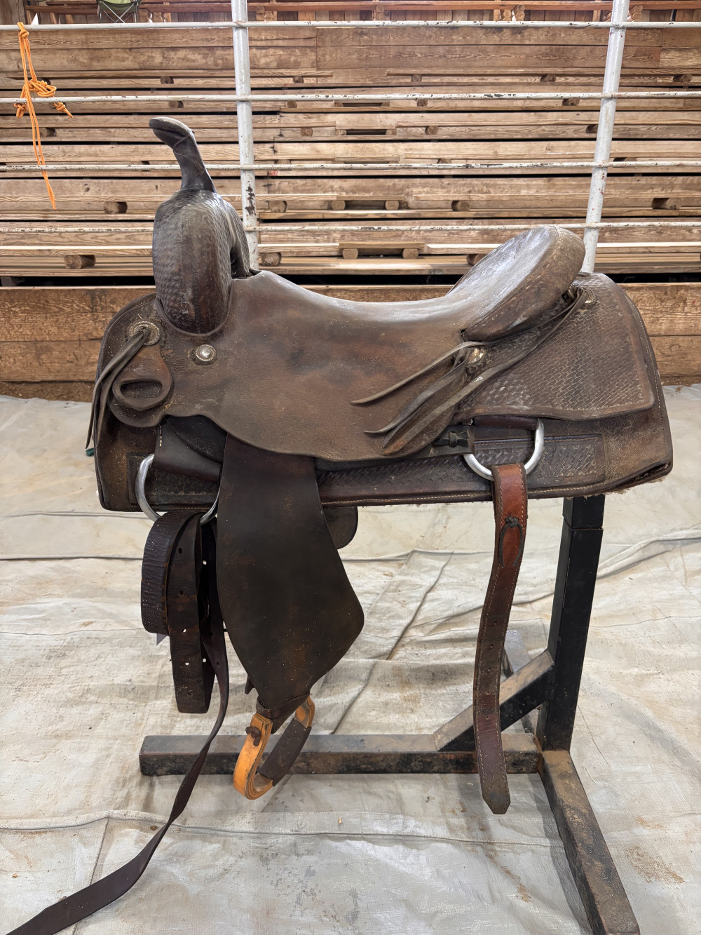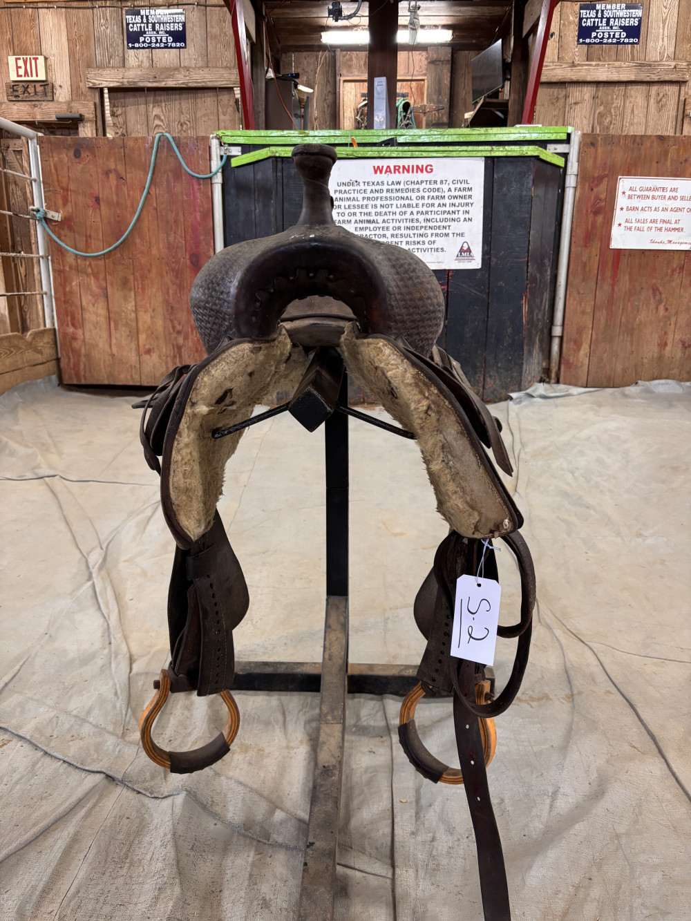 CUSTOM MADE CUTTING SADDLE (BRAND) (#S-2) APRIL 25 HORSE SALE SADDLES START @ 6PM