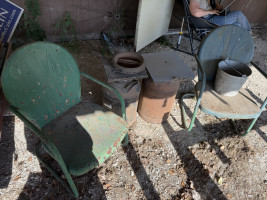# 338 — MILK JUGG TABLE AND CHAIRS WITH METAL BUCKET