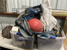 # 455 — MISC TABLE GLOVES, HARDHAT, TORCH, AND PANS