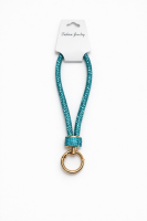 #33 — Teal Rhinestone Wrist Lanyard with Gold Key Ring