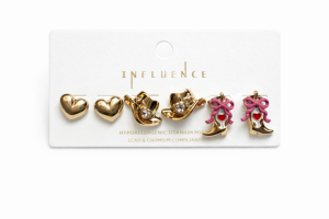 #38 — Western Cowgirl Stud Earring Set – Gold Hearts, Hats & Boots