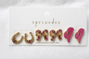 #26 — SET OF 3 WESTERN EARRINGS VALENTINE PINK