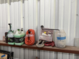 # 487 — MISC STUFF ON WALL, 2 JUG SLIME, EXTENTION CORD AND SPEAKER