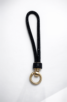 #63 — BLACK Rhinestone Wrist Lanyard with Gold Key Ring